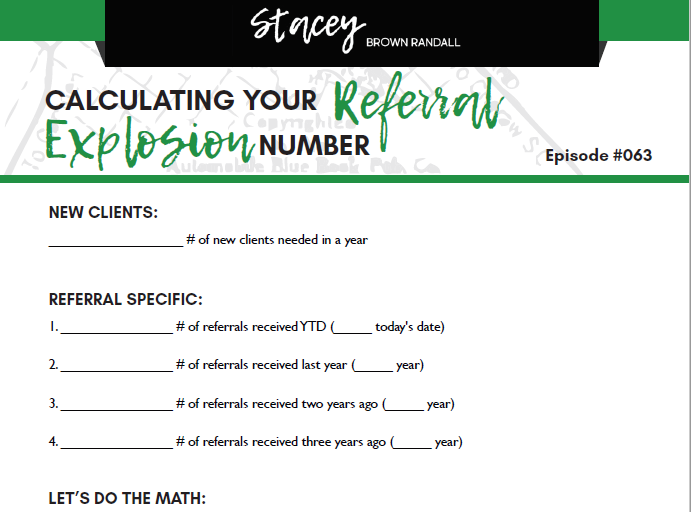 This one-page worksheet will easily and quickly walk you through calculating your referral explosion number.