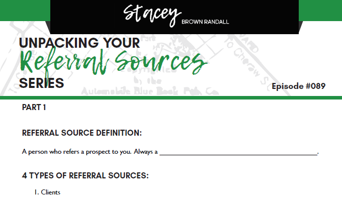 Make sure to have all the information straight for Part 1 to help you as we unpack your referral sources.